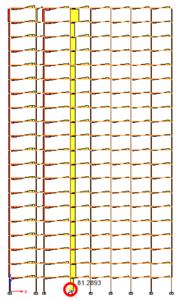 An internal shear force is an internal force that occurs in a structural element due to an external force acting parallel to the cross-sectional surface of the element. This force acts in a horizontal direction or parallel to the plane of the cross section and attempts to cause the structural elements to slide one against the other. Shear force 2.2 is the force that occurs in the direction of the local axis 2 (weak axis) of the frame. The large shear force is 81.2893 kN.