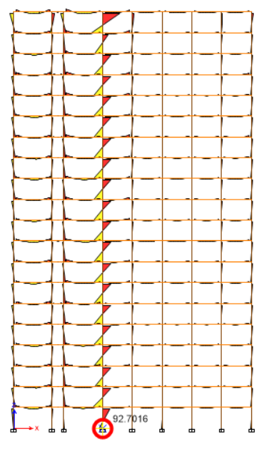 Moment is a quantity that measures the tendency of a force to cause rotation or twisting in an object or structure around a specific point or axis.The bending moment 3.3 is the force that occurs in the direction of the local axis 3 (strong axis) of the frame. It can be seen that the large bending moment is 92.7019 kN.m2.